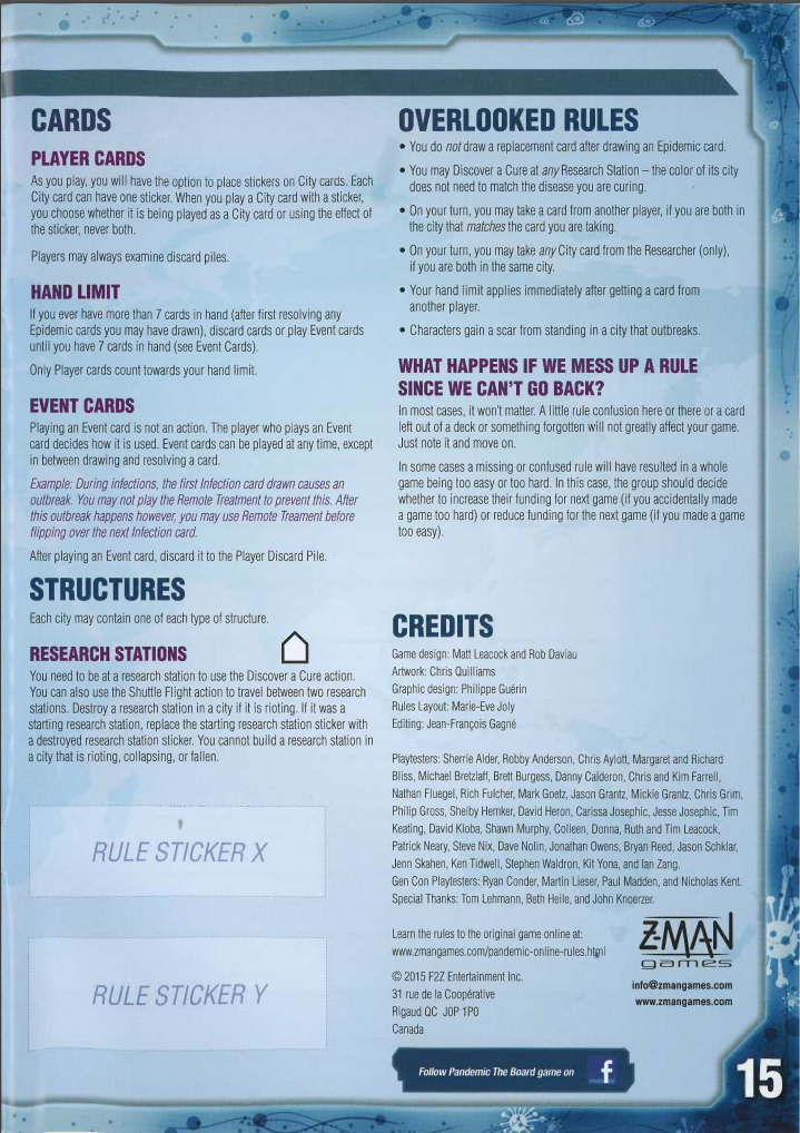 - Read the first page of the rules (after the contents) – the page titled “Overview” very carefully and make sure you understand that fully.