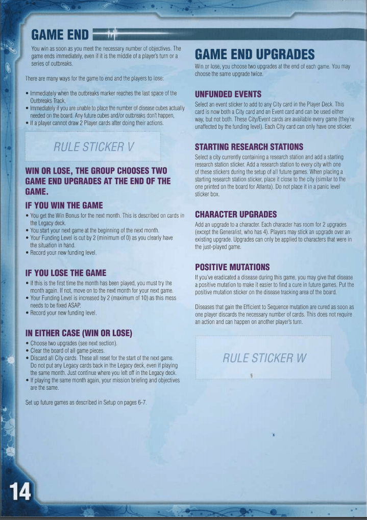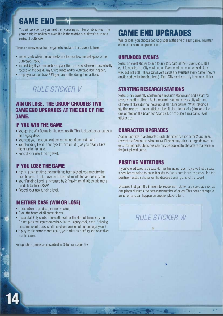 - At the start of the first time through a month you draw cards from the top of the Legacy deck, reading both sides on each card, until you reach a card in the deck labelled “STOP”. Read the instructions below the STOP sign to know when to resume drawing from the deck (either the start of a new month, the end of a month, or at a certain point during a game).