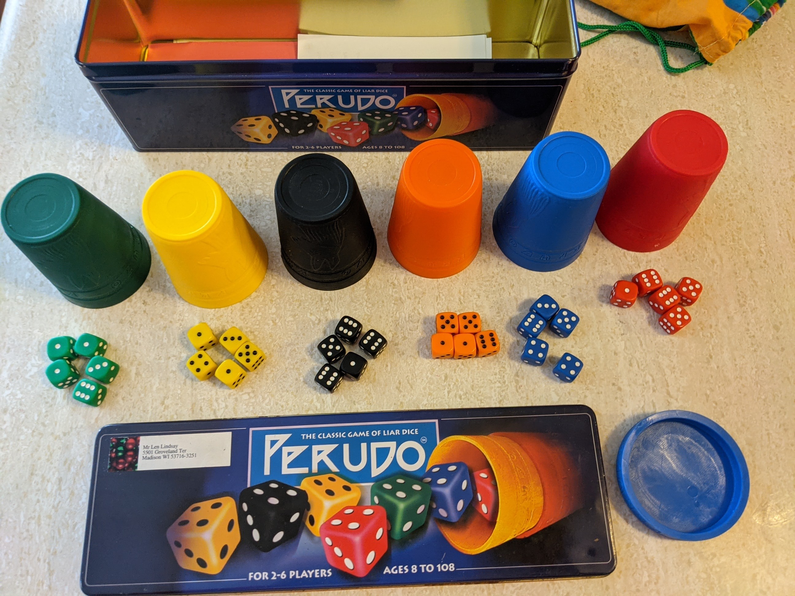 Perudo (aka Liar’s Dice) => BoardGameGeek => Perudo Rules => Video Playlist A look at the game: Playing Perudo: The game: Liar’s Dice is great for at 4, 5 or 6 players Share this: Click to share on X (Opens in new window) X Click to share on Facebook (Opens in new window) Facebook Like Loading... Related Leave a comment Cancel reply Δ