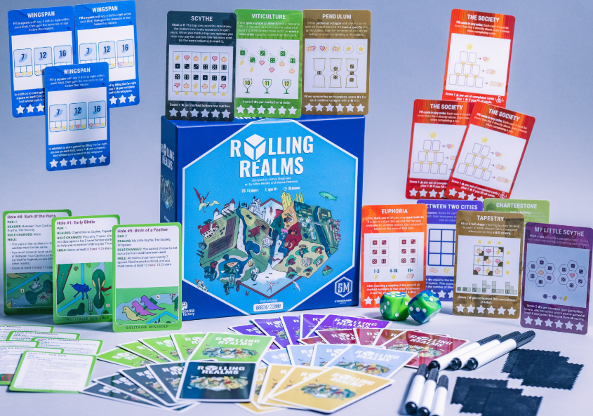 This is a game that is a collection of MANY mini roll and write games! Rolling Realms comes with 12 mini games. Then the Redux edition adds 12 more. Plus there are many mini game packs that you can add to the game. There already are over 100 mini games in the Rolling Realms universe!