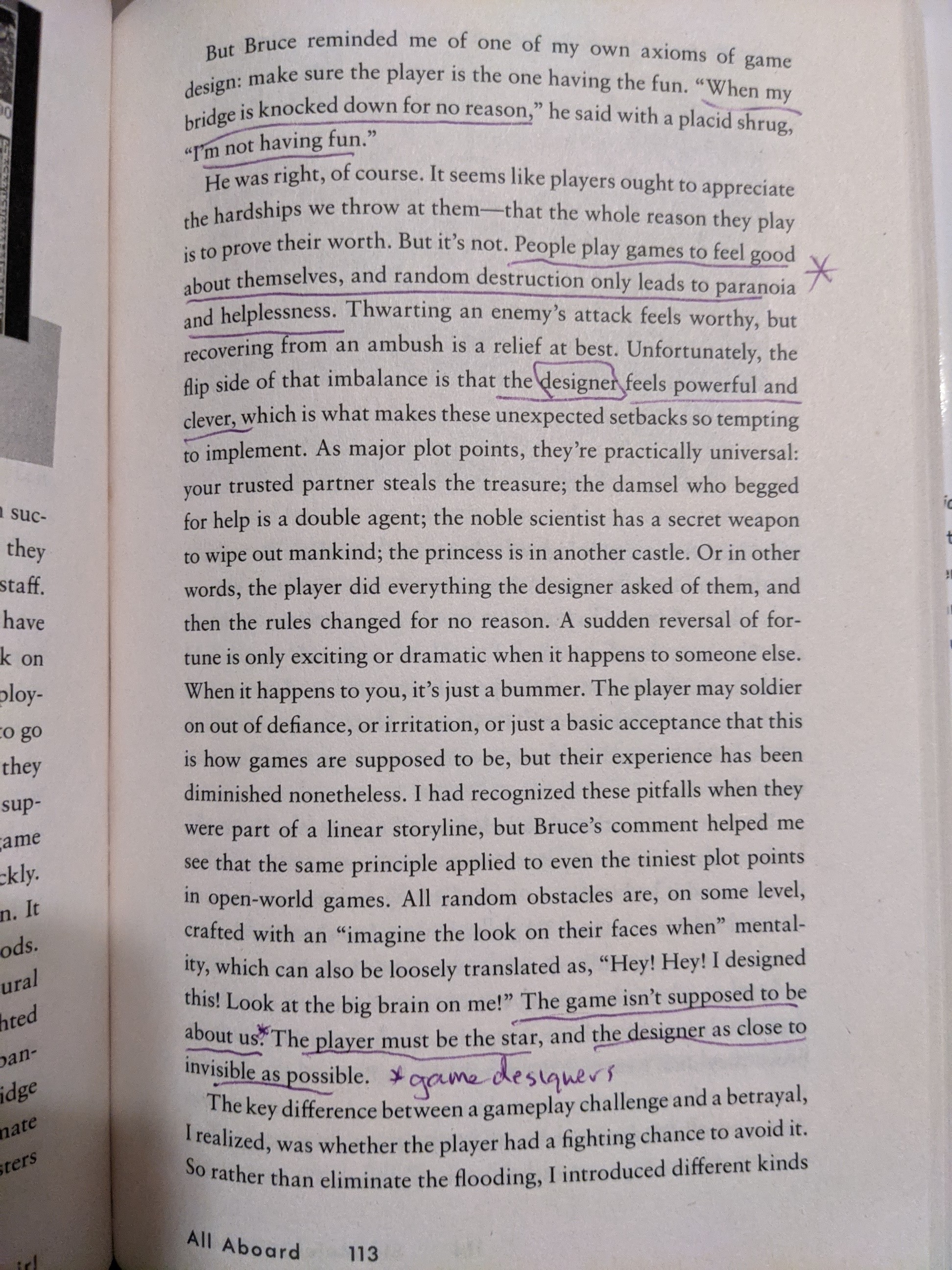 The game isn’t supposed to be about the game designer. The player must be the star, and the designer as close to invisible as possible.”